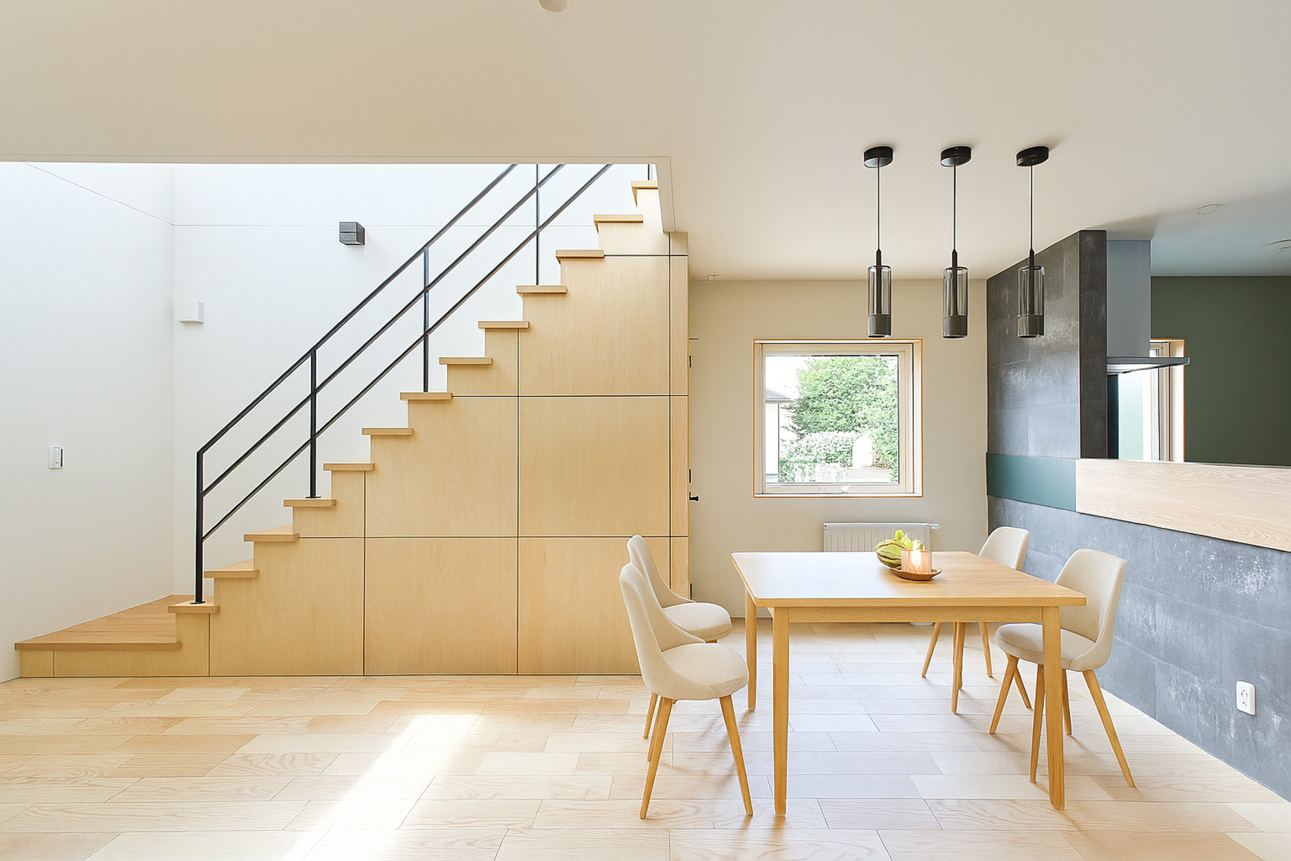 EV充電設備や耐久素材の選定で、暮らしのアップデートに対応。造作は部位ごとに更新しやすい構成で、長く“育てる住まい”を想定しています。
