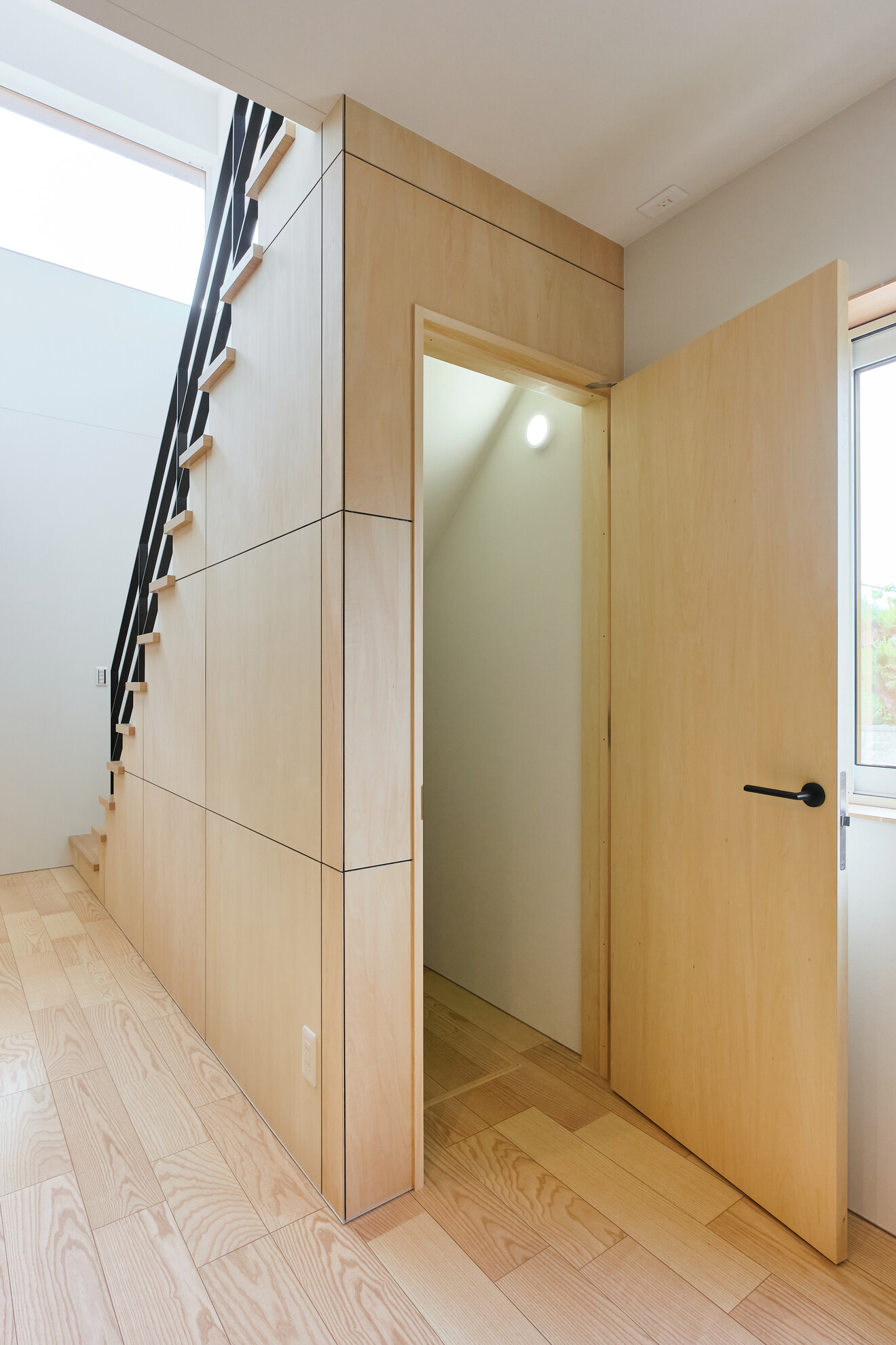 - 用途別に分節化した収納(掃除・書類・季節家電・学用品)